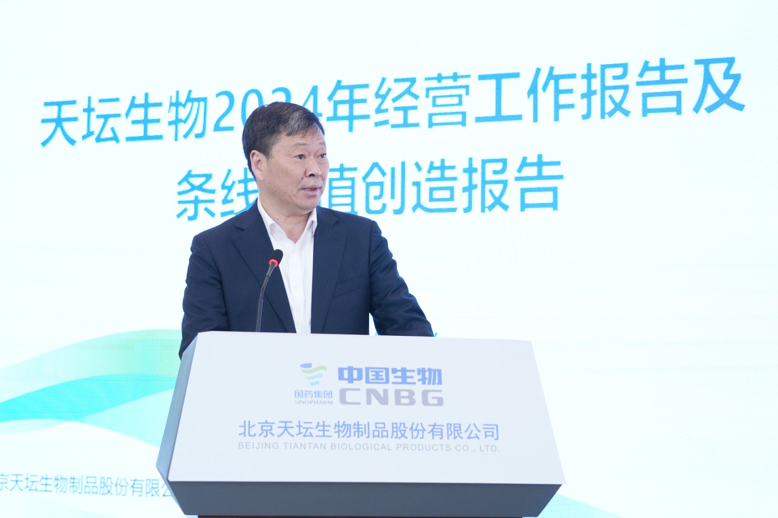 会议传达了国药集团和中国生物2024年工作会议精神。天坛生物总经理、党委副书记付道兴作题为《聚力科技创新,强化价值创造,谱写创建世界一流专业领军示范企业新篇章》的经营工作报告和《条线价值创造考核及其应用》的专题报告。从价值创造提升、科技研发创新、推动数字化转型、优化公司治理、强化党建引领等十个方面,回顾公司2023年取得的成绩,提出2024年的重点经营工作和目标任务。
