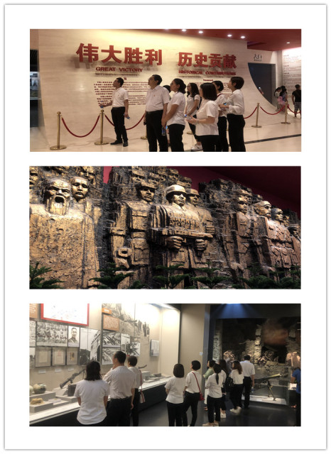 全体党员怀着无比崇敬的心情参观纪念馆,展览分“中国局部抗战”、“全民族抗战”、“中流砥柱”、“日军暴行”、“东方主战场”、“得道多助”、“伟大胜利”、“铭记历史”八个专题,内容涵盖了军事、政治、文化、社会、经济等多个历史侧面,通过珍贵的历史图片、文物、半景画、视频影像等丰富的形式,全面再现了中国人民艰苦卓绝的抗战情景。