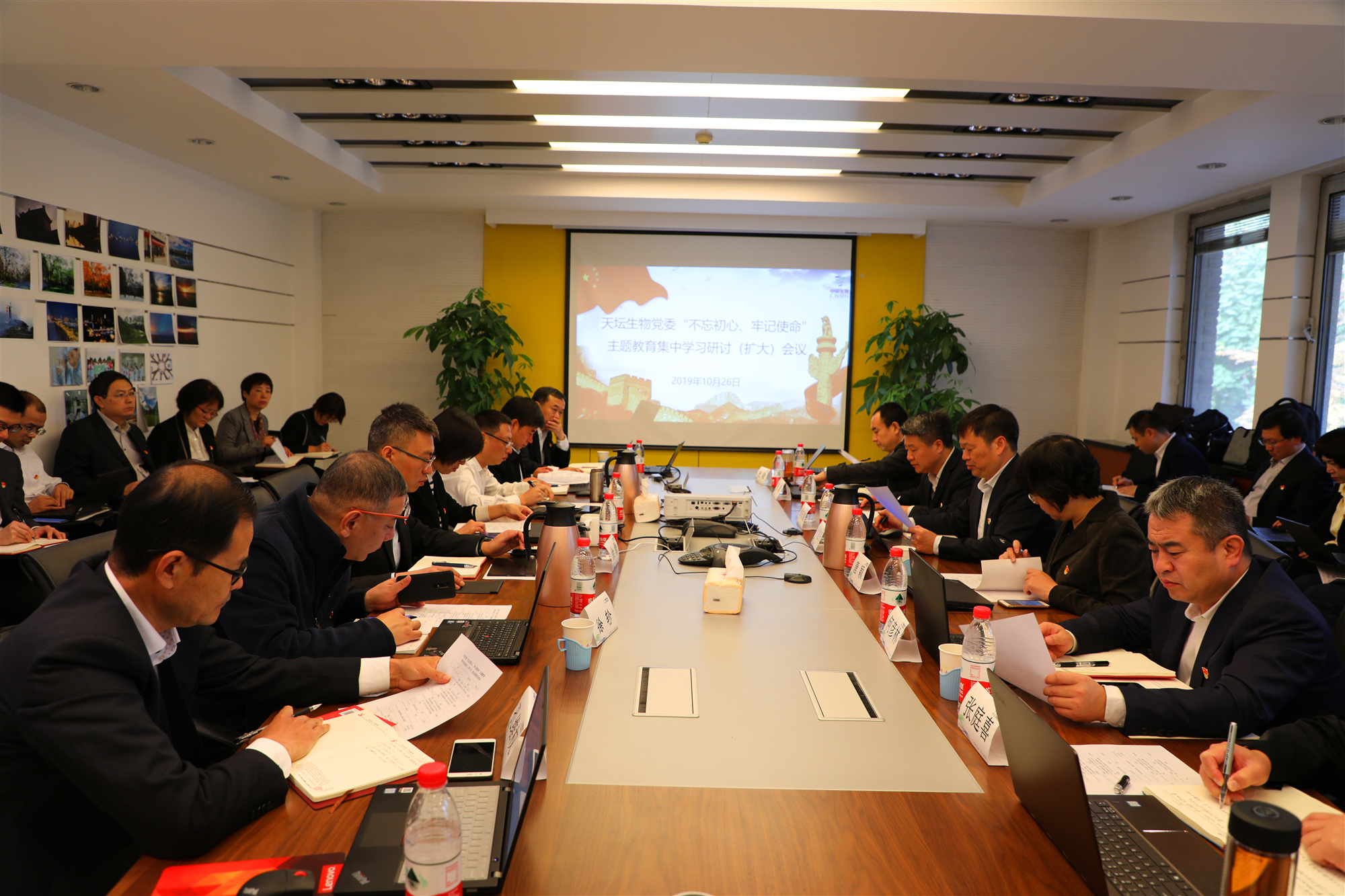 天坛生物党委“不忘初心、牢记使命”主题教育集中学习研讨通过以党委书记、总经理付道兴,党委委员、副总经理何彦林,党委副书记、纪委书记、副总经理周东波导读的方式,分别带领大家学习了《中国共产党章程》、《习近平新时代中国特色社会主义思想学习纲要》、习近平总书记在“不忘初心、牢记使命”期间的重要讲话和重要指示批示精神、《中国共产党重要党内法规》、《关于新形势下党内政治生活的若干准则》等内容,感悟“不忘初心、牢记使命”主题教育的精神实质和丰富内涵,深化对“初心”和“使命”的理解。