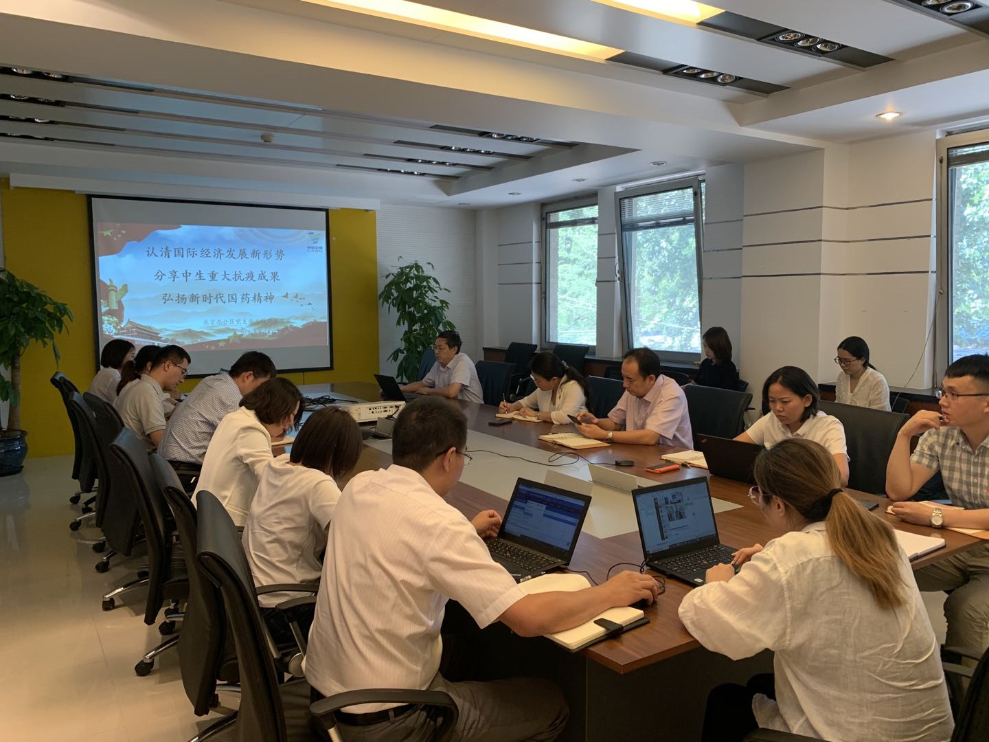 9月8日,天坛生物北京办公区党支部以服贸会为契机,组织支部党员开展“认清国际经济发展新形势,分享中生重大抗疫成果,弘扬新时代国药精神”主题党日活动,在京党员、员工共21人参加。