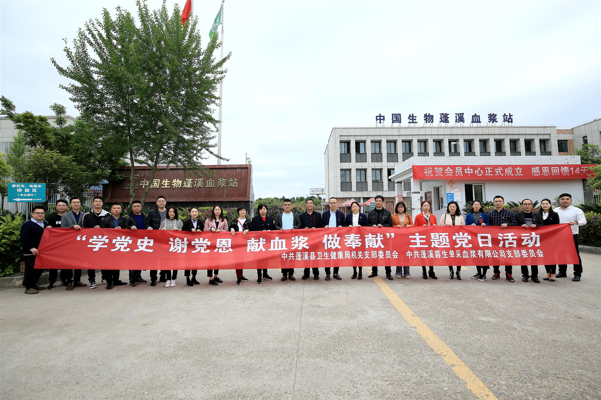 为纪念中国共产党建党100周年,充分发挥党员先锋模范作用。4月9日上午,蓬溪县卫健局党组书记、局长张启先带领县局40余名党员干部来到中国生物蓬溪血浆站开展“学党史、谢党恩、献血浆、做奉献”主题党日活动。